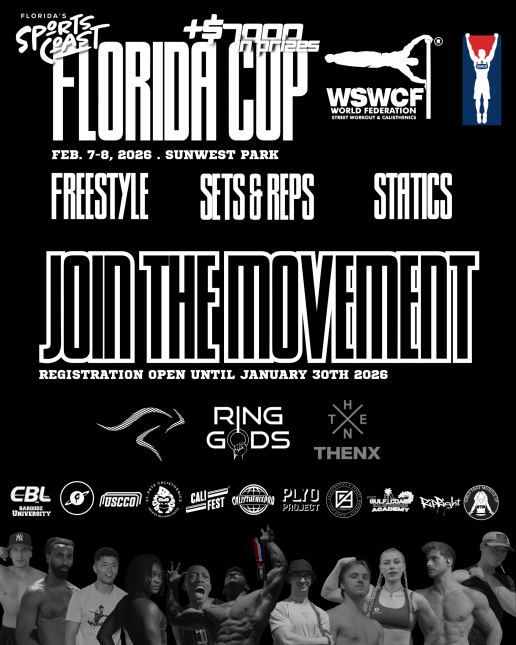 Athletes from around the world will battle it out in freestyle, sets & reps, and statics, competing for cash prizes and bragging rights under the Florida sun. Spectators can enjoy high‑energy performances, a vibrant community atmosphere, and the perfect excuse to turn the event into a sunshine‑filled getaway.